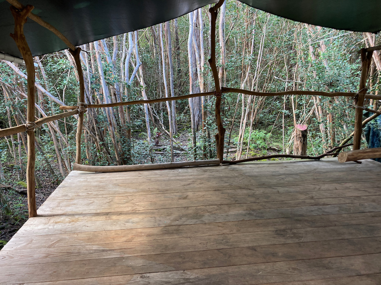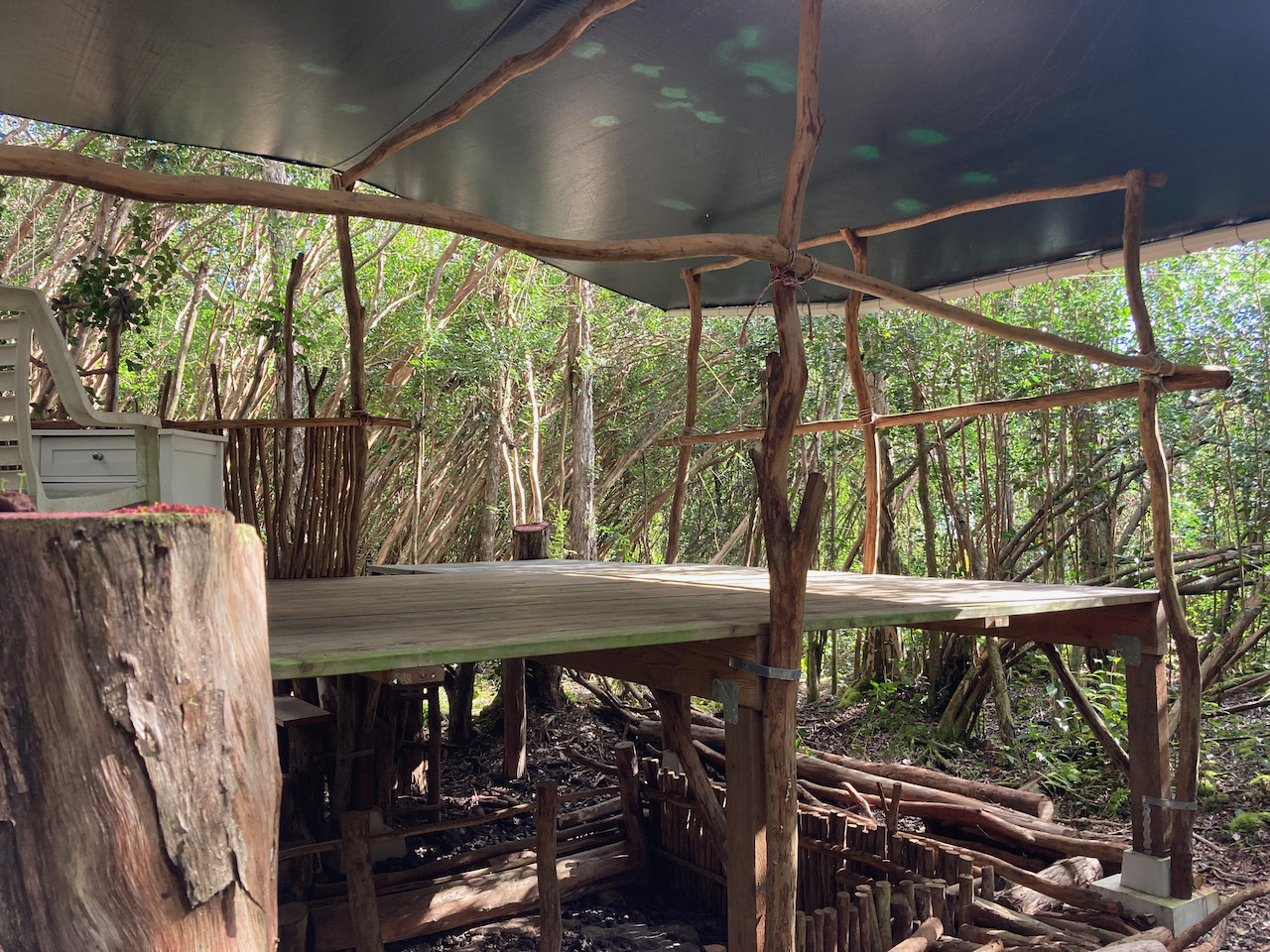 Seller has harvested strawberry guava and Ohia trees and is curing them on property for use in construction or furniture building. Seller used guava logs to create a tiny house-frame on the platform.
