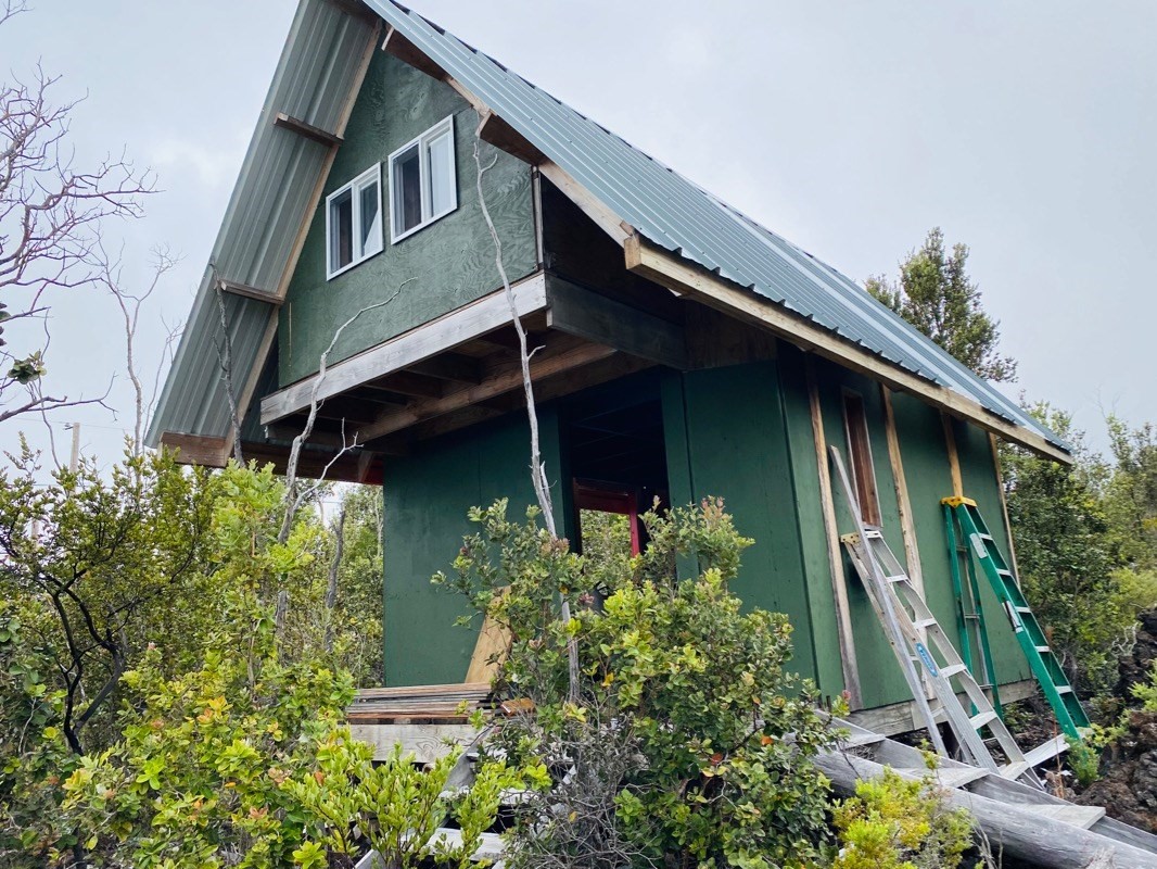 Put your own finishing touches on this charming and well built cabin in Ocean View. Must see the property to fully appreciate. Lightly wooded and on pavement! Finish this off grid building up or "glamp" in style while you build your dream home. Approx dimensions of the building are: upstairs loft 20x10, downstairs 16x12.