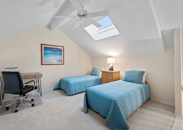 Back next to guest bedroom is a staircase that goes up to the loft. The loft has 2 twin beds and an office desk and chair for a working vacation. Unit has free secured WIFI and Spectrum cable tv. You have a garage to park in and it also contains beach gear for your vacation. Fairway Villas also has visitor stalls to use for your 2nd vehicle.
