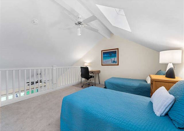 Back next to guest bedroom is a staircase that goes up to the loft. The loft has 2 twin beds and an office desk and chair for a working vacation. Unit has free secured WIFI and Spectrum cable tv. You have a garage to park in, and it also contains beach gear for your vacation. Fairway Villas also has visitor stalls to use for your 2nd vehicle.