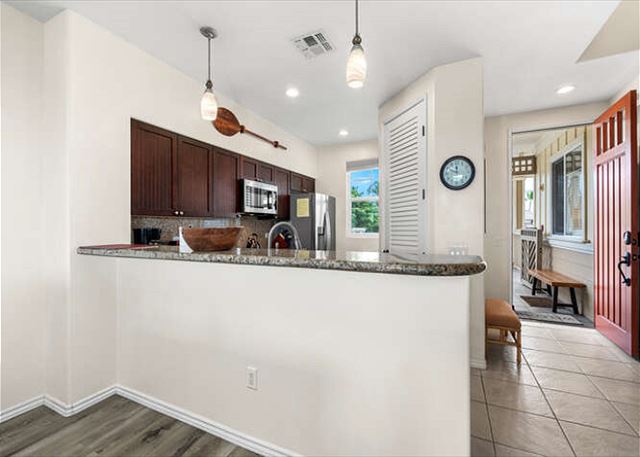 This Villa is beautiful, comfortable, and has everything you need for your stay. Ate most of our meals in; great kitchen. The lanai is beautiful with great views. Property was clean and well maintained. Close to restaurants, shops, few minutes walk to the pool, a little longer to get to the beach.