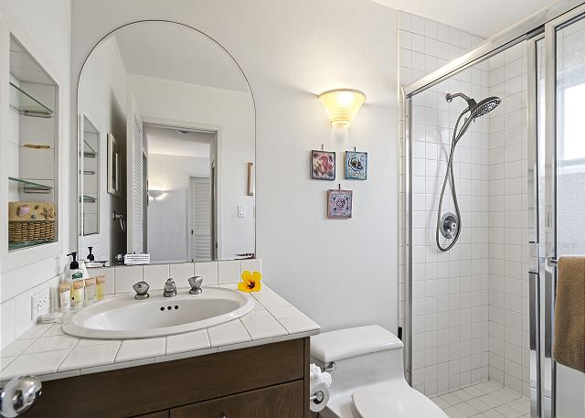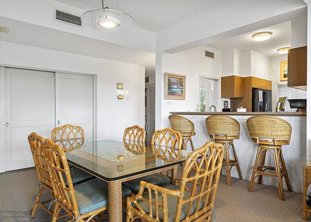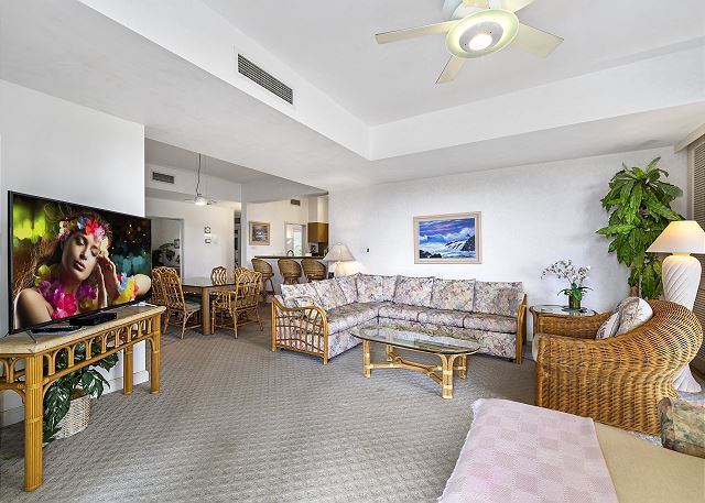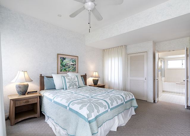 Open living room with amazing views and dining room with seating for 6. Check out the ocean views from our large wrap lanai that has 2 loungers and also table seating for 4. Full kitchen with everything you need to home cook meals. Master bedroom has a king bed, flat screen tv and on suite master bath. Guest bedroom has a queen bed and is next to a full guest bathroom.