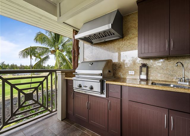 It is an elegant 2 bedroom, 2 bath top floor vacation retreat with all the comforts of your own home, including gourmet-equipped kitchen with everything you need for your stay including a waffle maker, private lanai and a brand new gas grill! Large living room with a flatscreen TV. Central air conditioning. FREE WIFI included.