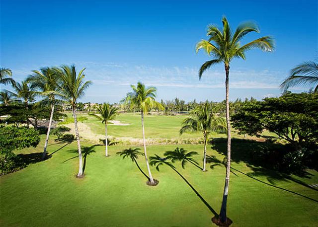 The complex is located in the best area of the entire Waikoloa Beach Resort, in walking distances to the King Shops, the A Bay Beach, and the Queens Marketplace. You can walk to Starbuck’s in the morning, go to the beach in the afternoon, or take an evening stroll to one of the many fine restaurants or under the stars from our villa. The villa is located on the top floor in the best and most private area of the Waikoloa Beach Villas complex, right on the golf course with spectacular views of the lakes, the golf course, the Kohala mountains, Mauna Kea and the Island of Maui.