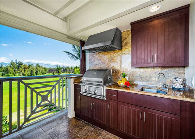 The large covered lanai area is appointed with a wonderful outdoor kitchen, gourmet stainless steel BBQ, and elegant teak outdoor furniture for entertaining. With fantastic views and over 350 of sunshine a year, this comfortably shaded lanai will certainly be the place of choice of guests to entertain friends or enjoying your morning breakfast watching the sunrise over Mauna Kea while enjoying a cup of coffee, or evening meals under the stars! Sunsets are also stunning from the Lanai!