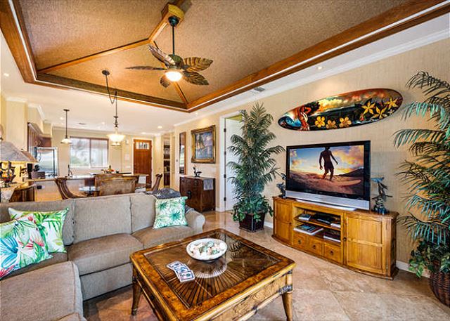 Luxury Penthouse Villa located in the privately gated Waikoloa Beach Villas, close to the activity center with two heated pools, fitness workout room and spa areas.