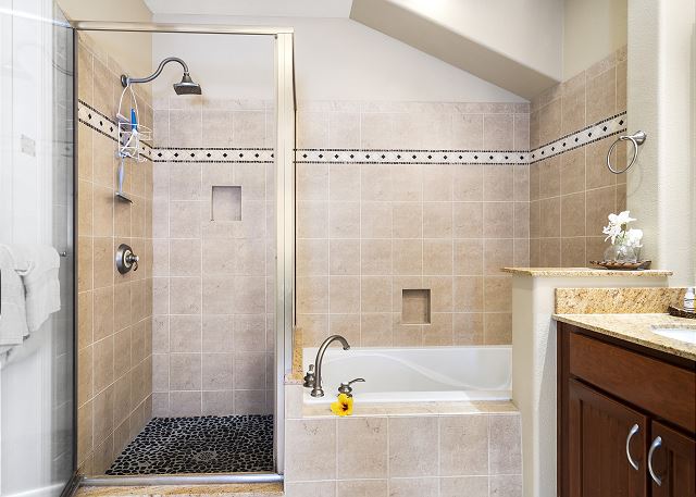 This 2 bdrm, 2 bath, 1,209 sq ft villa is very spacious and welcoming. The master suite offers a king-size bed, flat screen TV and a beautiful bathroom with a walk-in shower and a deep soaking bathtub. The guest bedroom has 2 brand new (06/2020) full size beds and bedroom is close to the main bathroom. There is also a sofa bed in the living room. NEW central air conditioning.